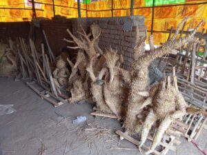 गुणवत्ता युक्त पैरा और जरूरी लकड़ियां। अहम हैं यह दोनों क्योंकि इनकी मदद से ही ऊंचाई और चौड़ाई तय की जाती है। लिहाजा मूर्तिकार बेहद सावधानी के साथ दोनों की खरीदी कर रहें हैं। कार्यस्थल पर पहुंचाए जाने के बाद छोटी प्रतिमाओं के लिए फ्रेम बनाए जाने लगे हैं, तो मध्यम आकार वाली प्रतिमाओं के लिए यह काम पूर्णता की ओर है।