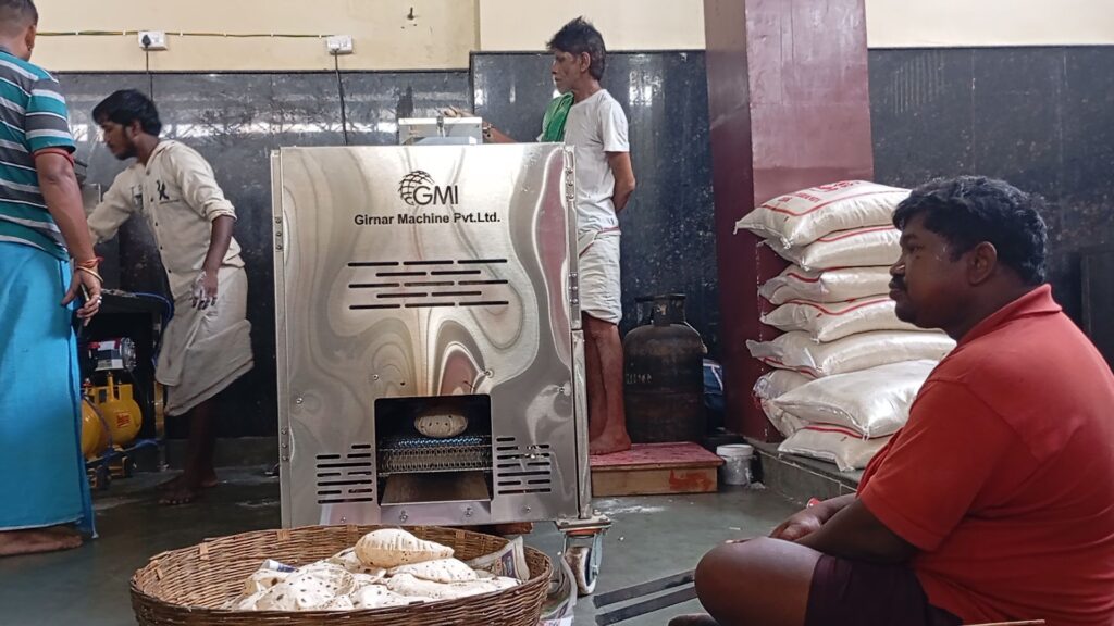 दो अलग-अलग हिस्से के पूरी तरह आटो मेटिक मशीन में जहां गेहूं के आटे की गुथाई हो जाती है, वहीं कंम्प्रेसर मशीन से कटकर लोई निकल आती है। जिसे मशीन के छेद पर डाला जाता है जहां गैस की आग की आंच में तपकर गेहूं की गर्मागरम फुल्की रोटी निकल आती है। बिजली और गैस से संचालित इस मशीन में हर घंटे गर्मागरम फुल्की रोटियां निकल रही है। जिसे श्रद्धालुओं को परोसा जा रहा है।