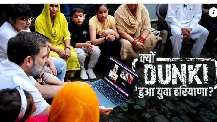 राहुल की ‘डंकी’ को सबने देखा अगर कोई नहीं देख पाया तो वे हरियाणा कांग्रेस के महत्वाकांक्षी बूढ़े नेता और नेत्रियां थीं जिनके बेटे-बेटियाँ राजनीति के रोज़गार में ही फल-फूल रहे हैं, जिन्हें डंकी रास्तों से विदेश जाने की कभी ज़रूरत ही नहीं पड़ी।