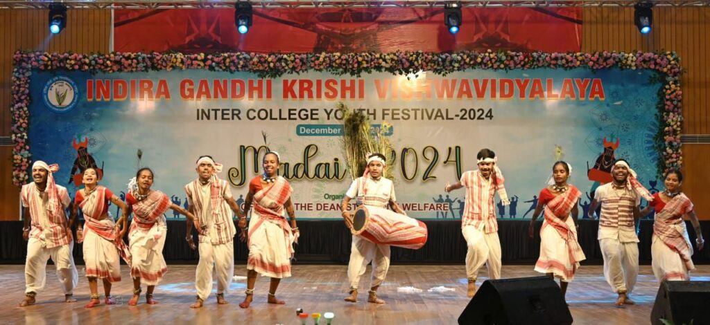 इंदिरा गांधी कृषि विश्वविद्यालय रायपुर में आयोजित सांस्कृतिक युवा महोत्सव मड़ई 2024 के दूसरे दिन एकल अभिनय, तात्कालिक भाषण, ऑन दी स्पॉट पेंटिंग, एकांकी, समूह गायन, कोलाज मेकिंग, मिमिक्री, भाषण, समूह गायन, लोक व आदिवासी नृत्य की आकर्षक प्रस्तुतियां दी।