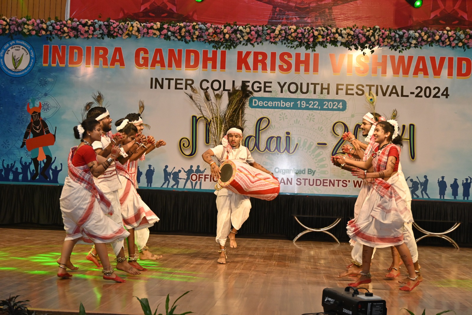 इंदिरा गांधी कृषि विश्वविद्यालय रायपुर में आयोजित चार दिवसीय अंतर महाविद्यालयीन सांस्कृतिक युवा महोत्सव मड़ई 2024 का रंगा-रंग समापन हुआ। समारोह की अध्यक्षता कर रहे इंदिरा गांधी कृषि विश्वविद्यालय के कुलपति डॉ. गिरीश चंदेल ने कहा मड़ई 2024 में विद्यार्थियों ने अपनी कलाओं का बेहतरीन प्रदर्शन किया। अधिष्ठाता छात्र कल्याण डॉ. संजय शर्मा ने मड़ई के अंतर्गत आयोजित कार्यक्रम की जानकारी दी। डॉ बी.पी. कतलम ने आभार व्यक्त किया।