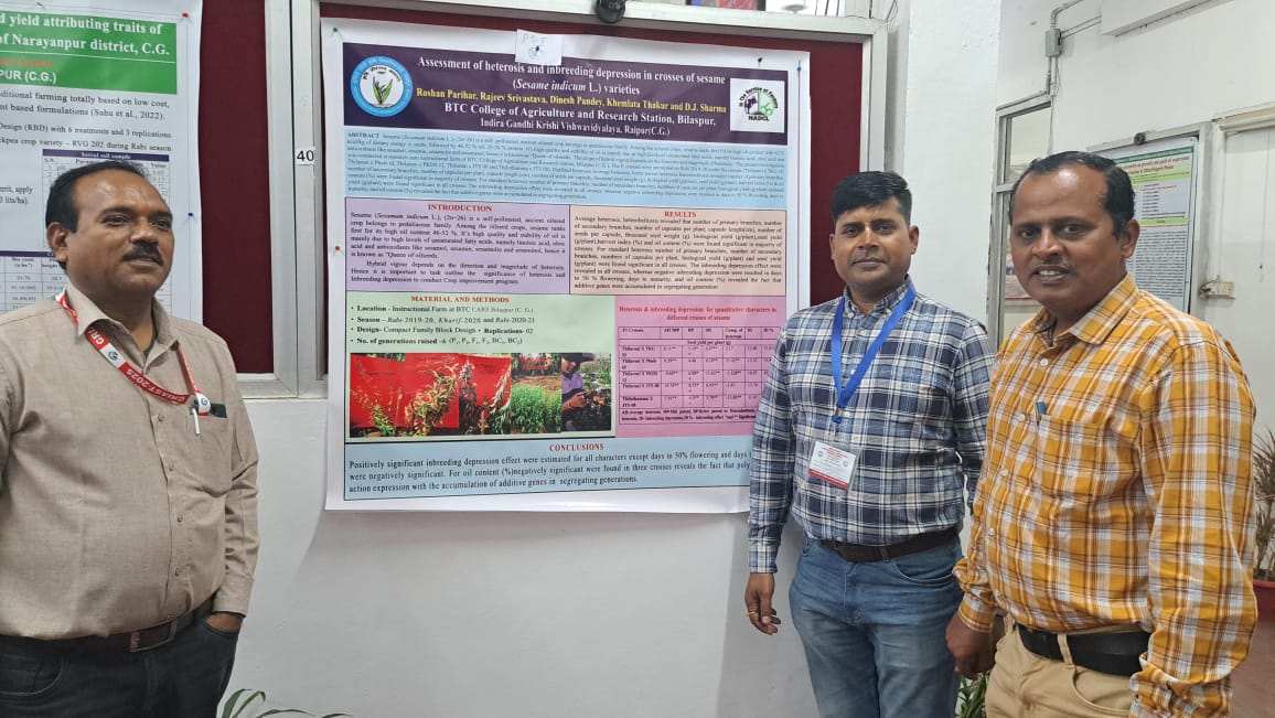 बिलासपुर। इंदिरा गांधी कृषि विश्वविद्यालय के 39वें स्थापना दिवस के अवसर पर इंदिरा गांधी कृषि विश्वविद्यालय, रायपुर व राष्ट्रीय कृषि विकास सहकारी लिमिटेड, बरामूला (जम्मू कश्मीर) के संयुक्त तत्वावधान में आयोजित “कृषि, विज्ञान और प्रौद्योगिकी के लिए वैश्विक अनुसंधान पहल” विषय पर आयोजित तीन दिवसीय अंतर्राष्ट्रीय सम्मेलन में बैरिस्टर ठाकुर छेदीलाल कृषि महाविद्यालय एवं अनुसंधान केंद्र, बिलासपुर के अनुवांशिकी एवं पादप प्रजनन विज्ञान विषय के वैज्ञानिक डॉ. रोशन परिहार को शोध पत्र “तिल की विभिन्न किस्मों के बीच संकरण कराकर संकर ओज और अंतः प्रजनन ह्रास का आंकलन” विषय पर बेस्ट पोस्टर का अवार्ड प्रदान किया गया।