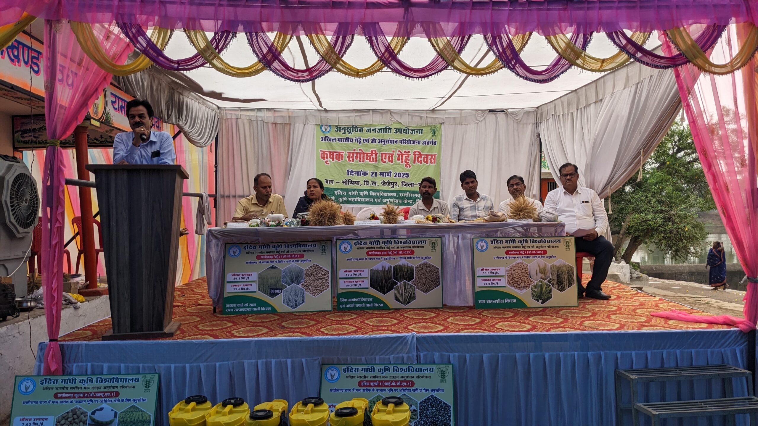 मुख्य अतिथि जानकी चंद्रा सदस्य प्रबंध मंडल इंदिरा गांधी कृषि विश्वविद्यालय रहीं। अधिष्ठाता डॉ. एन.के. चौरे कृषि महाविद्यालय बिलासपुर ने अध्यक्षता की। डॉ. दिनेश पांडे, प्रमुख अन्वेषक अखिल भारतीय गेहूं एवं जौ अनुसंधान परियोजना के निर्देशन में कार्यक्रम किया गया।