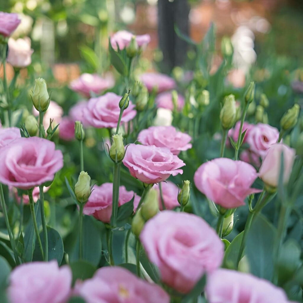 उत्पादन क्षमता के आधार पर विकसित यूस्टोमा ग्रेंडीफ्लोरम की चार श्रेणियां बनाई गई हैं। इन्हें इको, मारियाची, रोसिता और एरेना के नाम से पहचाना जाता है। इनमें सफेद, गुलाबी, बैंगनी, नीला, पीला, लैवेंडर और द्विरंगी पुष्प लगते हैं। बड़े, गोल और मुलायम पंखुड़ियां वाले होने की वजह से ही यह एकदम गुलाब की तरह दिखता है। फूल बाजार इसे गुलाब का शानदार विकल्प मान रहा है।