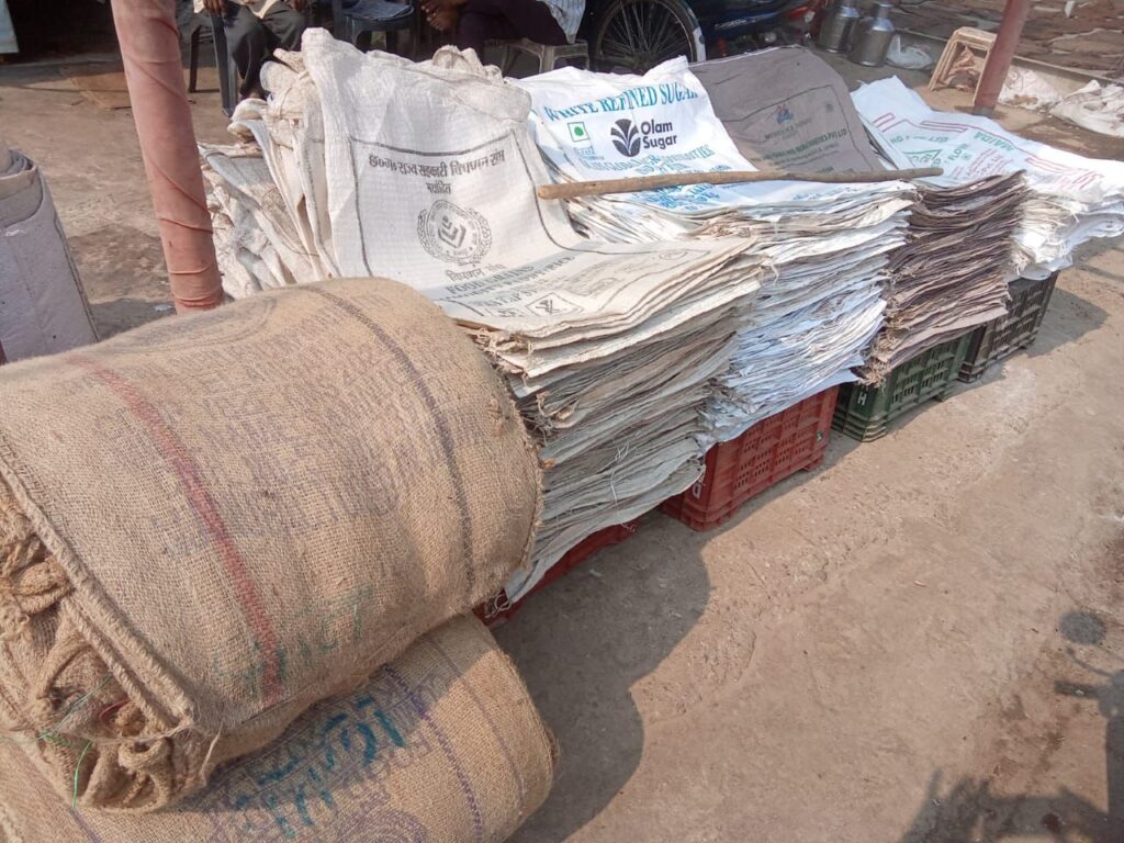 बिलासपुर। सीजन खत्म। 50 फीसदी टूट के बाद ओल्ड जूट बैग सिर्फ 8 से 9 रुपए प्रति नग। खरीदी में मात्रा बढ़ाई तो 1 से 2 रुपए की छूट की संभावना। प्लास्टिक की बोरियां तो किलो हिसाब में मिल जा रहीं हैं।