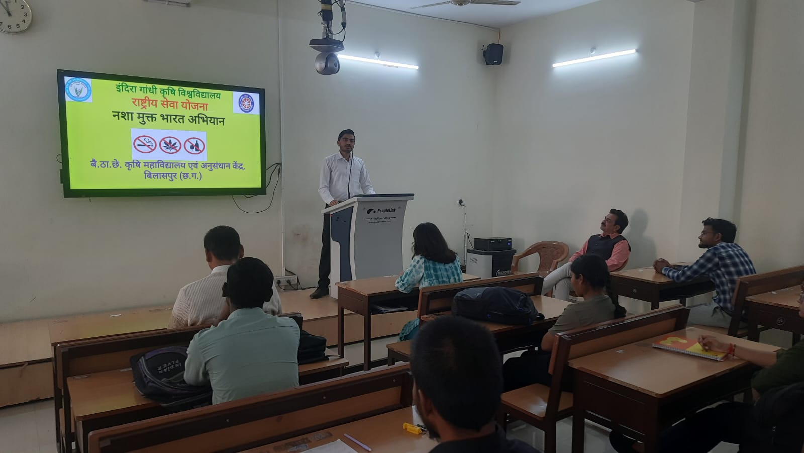 बैरिस्टर ठाकुर छेदीलाल कृषि महाविद्यालय एवं अनुसंधान केंद्र, बिलासपुर की राष्ट्रीय सेवा योजना इकाई ने जन-जागरूकता अभियान व नशा मुक्ति शपथ कार्यक्रम का आयोजन किया गया। डॉ. दीपक श्रीवास्तव ने कहा नशा केवल व्यक्तिगत समस्या नहीं है। यह समाज और राष्ट्र के विकास में बाधक है। आज का युवा वर्ग यदि जागरूक और अनुशासित रहेगा, तभी स्वस्थ, सशक्त और आत्मनिर्भर भारत का निर्माण संभव है।