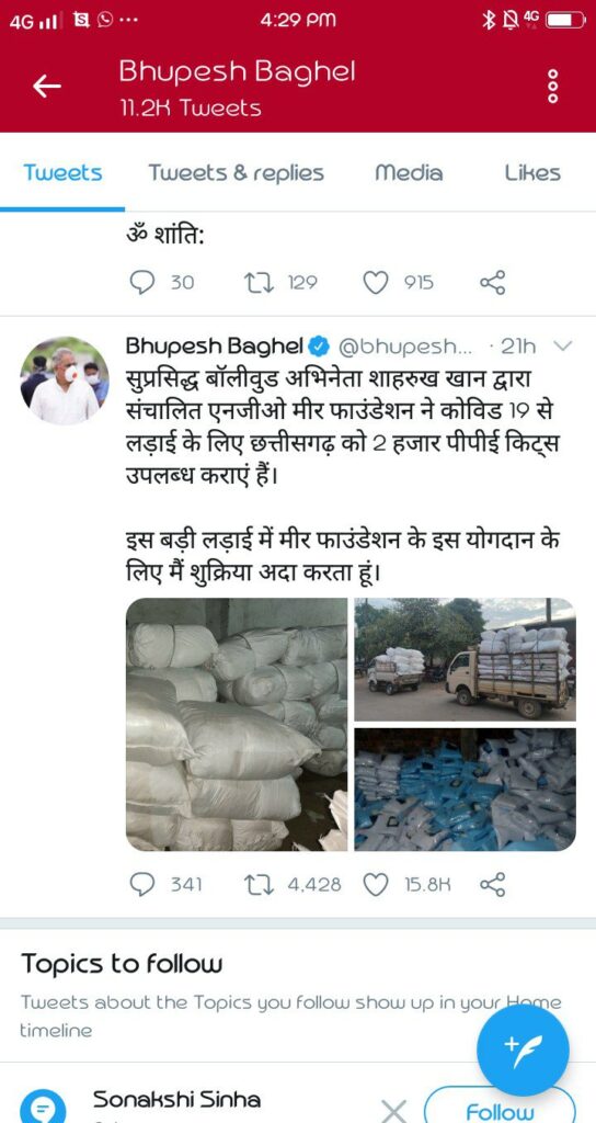 एक्टर की संस्था मीर फाउंडेशन ने उपलब्ध कराए हैं PPE किट, मुख्यमंत्री भूपेश बघेल ने कहा- शुक्रिया