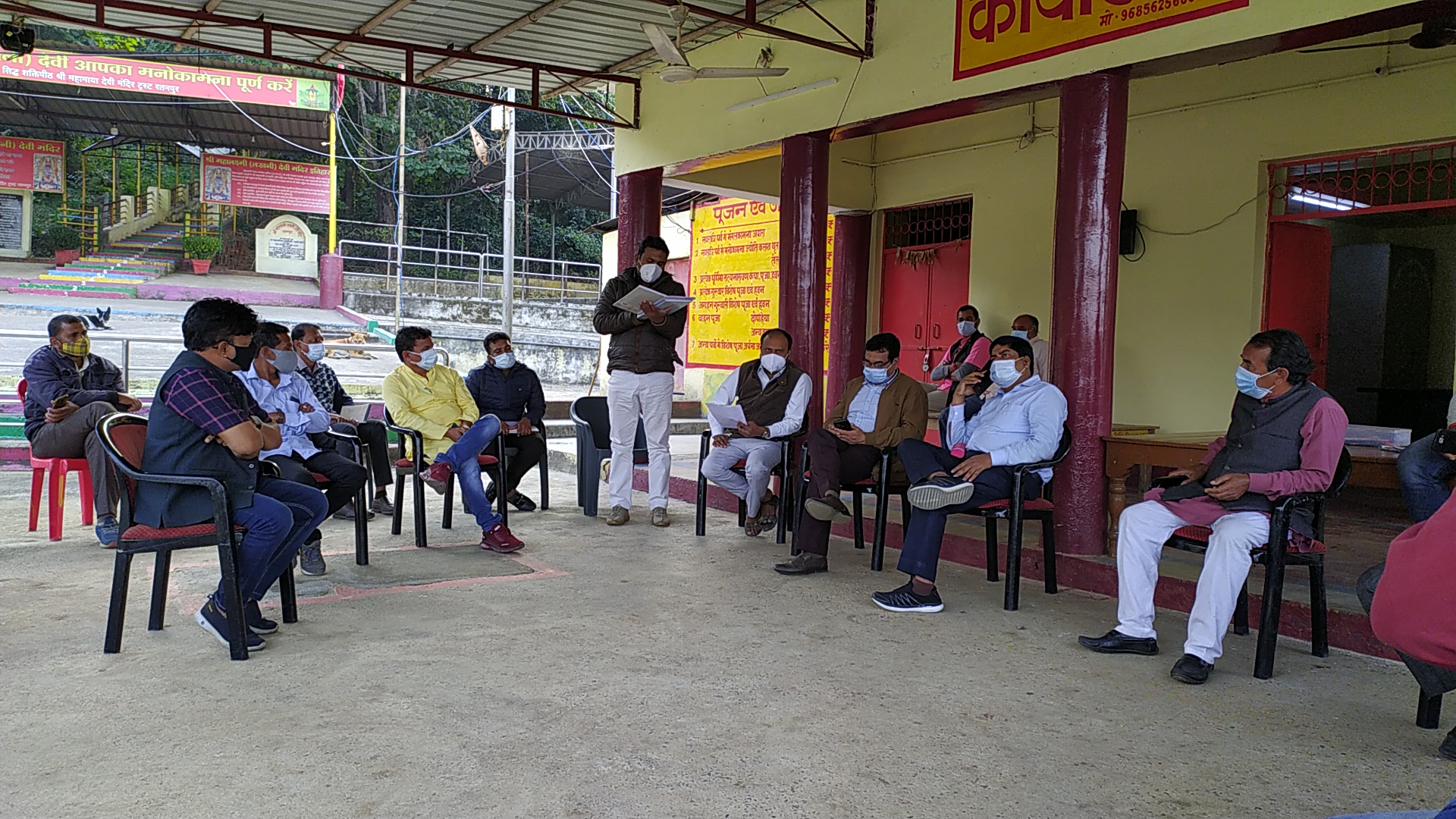 महामाया कोविड केयर सेंटर के आफिस कार्य के लिए कम्प्यूटर, प्रिंटर, चिकित्सकीय स्टाफ के रहने और भोजन की व्यवस्था करने के लिए श्री महामाया मंदिर ट्रस्ट रतनपुर से निवेदन किया गया। इस पर ट्रस्ट प्रबंधन के मौजूद प्रतिनिधियों ने अपनी सहमति दी। बैठक में महामाया कोविड केयर सेंटर के प्रभारी डॉ चंदेल ने चौबीस घंटे चार शिफ्ट में ड्यूटी करने के लिए स्वास्थ्य विभाग में पर्याप्त कर्मचारियों के होने की जानकारी दी। वहीं वार्ड ब्वाय और सफाई कर्मचारियों की व्यवस्था जनसहभागिता से करने का अनुरोध किया जिस पर पूर्व की भांति व्यवस्था बनाने पर सहमति बनी। परिसर की सुरक्षा के लिए थाना प्रभारी से पूर्व की भांति होमगार्ड के सिपाही तैनात करने पर चर्चा करने की बात कही गई।