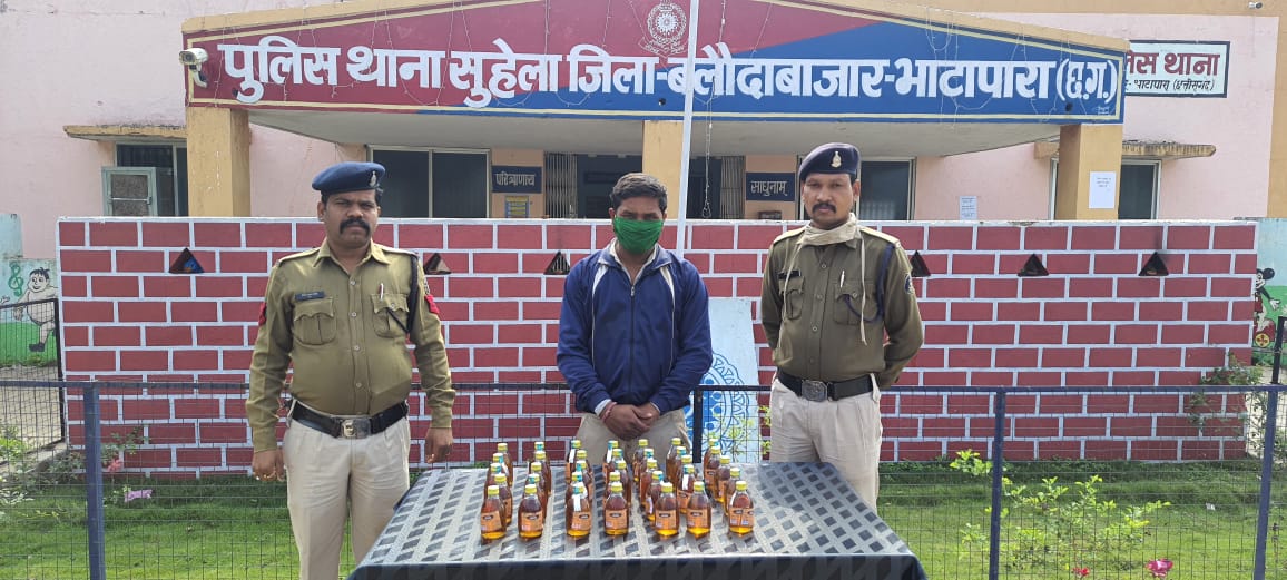 वरिष्ट पुलिस अधीक्षक दीपक कुमार झा बलौदाबाजार द्वारा थाना क्षेत्र में शराब की अवैध बिक्री पर अंकुश लगाने व असामाजिक तत्वों के विरुद्ध कार्रवाई करने प निर्देश के परिपालन में अतिरिक्त पुलिस अधीक्षक दिए थे । सुहेला थाना प्रभारी ओमप्रकाश त्रिपाठी के नेतृत्व में थाना क्षेत्र में पेट्रोलिंग कर शराब की अवैध बिक्री पर कार्रवाई की जा रही है । रविवार को मुखबिर की सूचना पर अलग अलग जगहों पर रेड कार्यवाही की गई जिसमें आरोपी जसपाल सिंह जांगडे पिता रेशमलाल जांगडे उम्र 27 वर्ष ग्राम मोहरा थाना सुहेला के द्वारा ग्राम मोहरा पेट्रोल पंप के पास अवैध रूप से शराब बिक्री करते मिला
