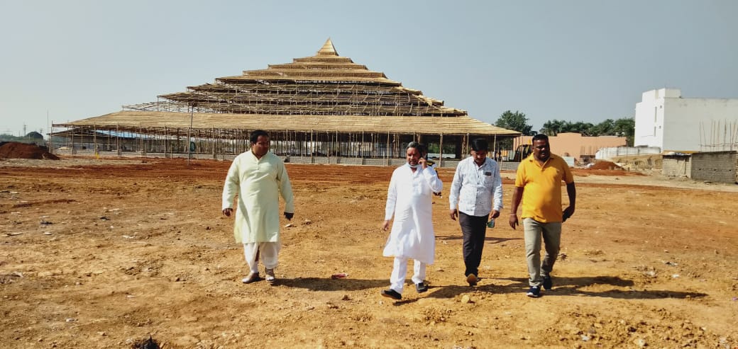 बिलासपुर। दैवी सम्पद मंडल के तत्वाधान में छत्तीसगढ़ की न्यायधानी बिलासपुर में सनातन धर्म की रक्षा एवं विश्व कल्याणार्थ, कोरोना वायरस से संक्रमित वैश्विक महामारी के निवारण हेतु पूज्य श्री स्वामी शारदानंद सरस्वती जी महाराज द्बारा संकल्पित रुद्रातिरुद्र महायज्ञ त्रिवेणी परिसर व्यापार विहार के पास 3 दिसम्बर से 11 दिसम्बर तक कराया जाएगा। 9 मंजिला यज्ञ के लिए कुटिया का निर्माण कराया गया है। जहां 3०1 यज्ञ कुंड बनाया जाएगा जिसमें सवा चार करोड़ आहुतियां डाली जाएगी। सोमवार को यज्ञ स्थल में चल रहें काम का निरीक्षण करने महापौर रामशरण यादव और सभापति शेख नजीरुद्दीन पहंुचे। महापौर ने बताया कि इस स्थान पर देश प्रदेश और जिला में सुख शांति के लिए रुद्रातिरुद्र महा यज्ञ होगा।