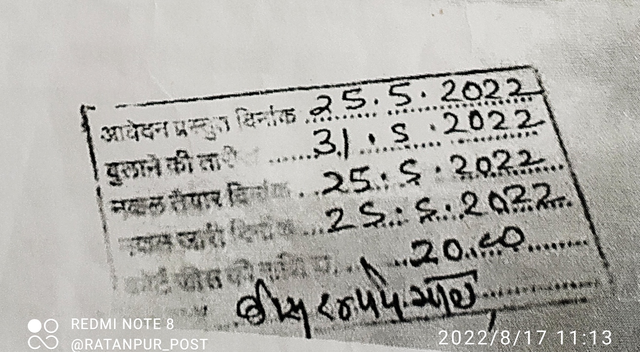 रतनपुर. रतनपुर महामाया चौक स्थित करोड़ों की 15 डिसमिल आबादी जमीन की चौकीदारी कर रहे भू माफियाओं पर रतनपुर तहसीलदार और तहसील आफिस रतनपुर इतने मेहरबान है कि जिस दिन फैसले का नकल देने आवेदन करते हैं उसी दिन ही फैसले के नकल की सत्यापित कापी मिल जाती है. वही खाली पड़ी सरकारी आबादी जमीन को बचाने जुटे लोगों को नकल देने तय समय बीतने के बाद भी सत्यापित कापी देने में तहसील आफिस का अमला टालमटोल कर रहा है.