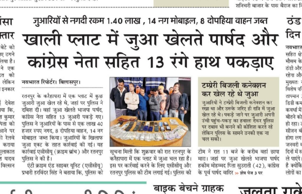 रतनपुर थाना में जुआ खेलने के आरोपी को छोड़ने और लाखों रुपए के जुआ फड़ में सिर्फ एक लाख चालीस हजार रुपए की बरामदगी का मामला