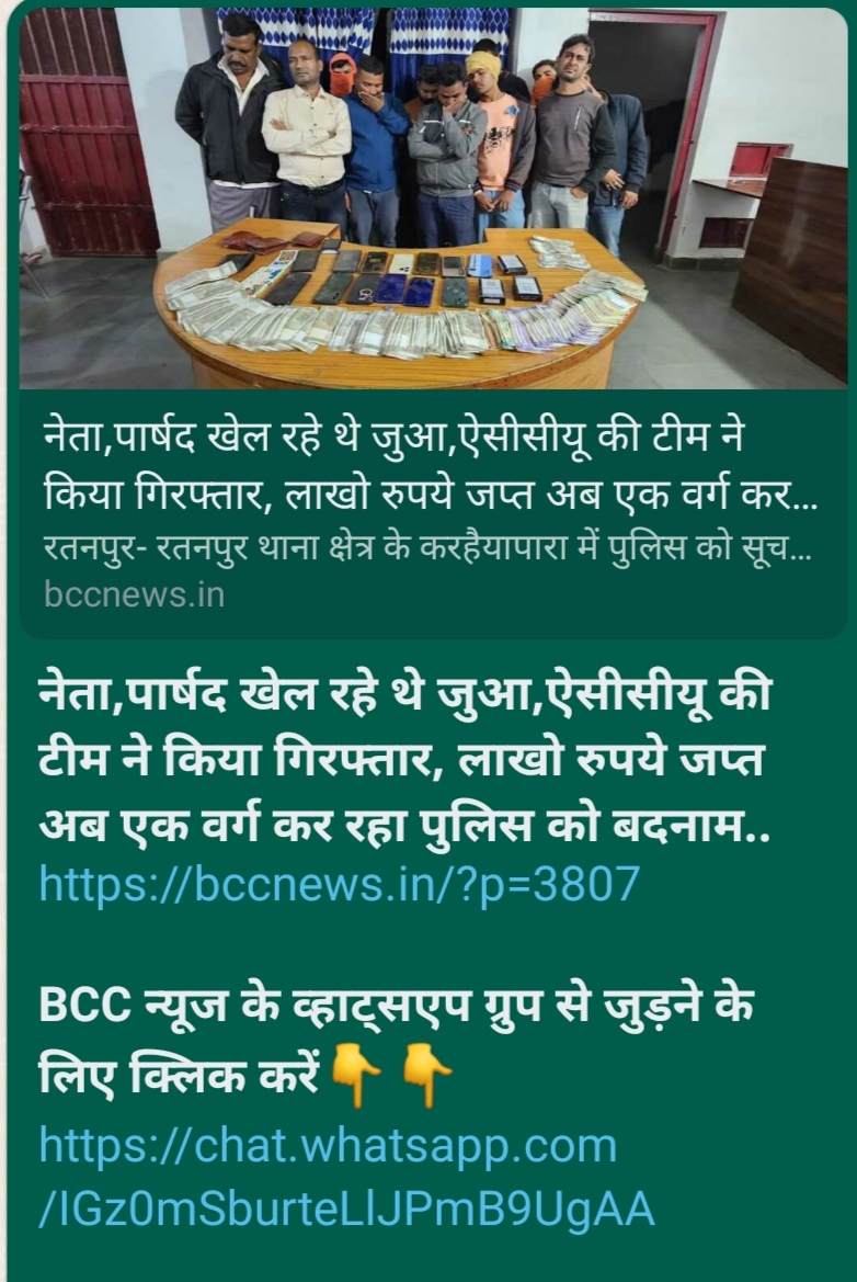 एसीसी यूनिट के द्वारा रतनपुर थाना क्षेत्र के करैहापारा में पकड़े गए लाखों रुपए के जुएं में अनेक झोल के खुलासे हो रहे हैं. रतनपुर थाना पुलिस पर कुछ आरोपियों को संरक्षण देकर एफआईआर में उनका नाम ही दर्ज नही करने के आरोप लगे हैं. इस आरोप के सच होने की गवाही पुलिस द्वारा अखबारों को समाचारपत्र में प्रकाशित करने उपलब्ध कराई गई फोटो ही दे रहे हैं. रतनपुर थाने में पुलिस द्वारा बरामद कर जब्त राशि और मोबाईल के साथ आरोपियों की फोटो मोबाइल से पुलिस कर्मियों ने ही खींचें हैं. इसे समाचार के साथ प्रकाशित करने पुलिस ने ही उपलब्ध कराई गई. अखबारों में आरोपियों की फोटो भी प्रकाशित है. आरोपियों के बीच एक चेहरा ऐसा भी है जिसका नाम एफआईआर में दर्ज 13 नामों से मेल नहीं खाता. ऐसे में सवाल उठना स्वाभाविक है कि आखिर देर रात आरोपियों के बीच वो शख्स थाने में क्या कर रहा है. मान लें कि वो कुछ काम से थाने गया भी था तो वो आरोपियों के फोटो एंगल में अपना चेहरा छिपाते क्यों दिख रहा है. इसके लिए थाने में लगे सीसीटीवी कैमरे की रिकॉर्डिंग का उपयोग भी जांच अधिकारी कर सकते हैं.