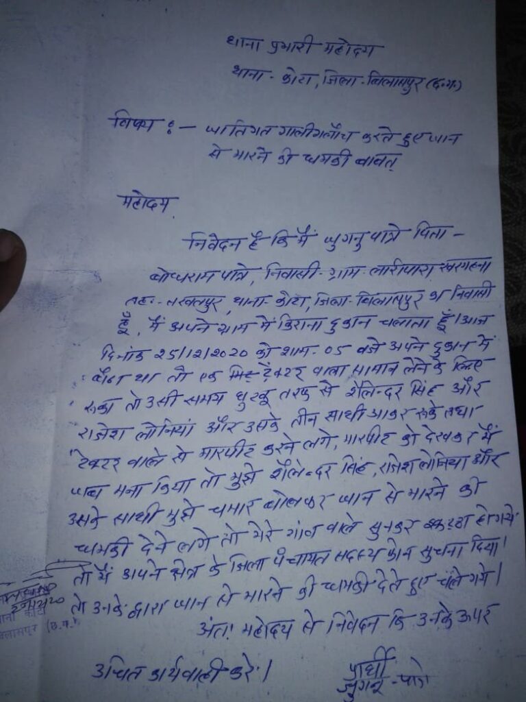 बिलासपुर। तखतपुर विधानसभा के ग्राम पंचायत घुटकू, तुर्काडीह और निरतू में पीछले एक साल से अवैध रेत उत्खन्न किया जा रहा है। शुक्रवार को ग्रामीणों ने अवैध उत्खन्न का विरोध किया तो रेत ठेकेदार के पंडो ने ग्रामीणों के साथ मारपीट की जिसकी लिखित शिकायत कोटा के थाने में दर्ज कराई गई है।