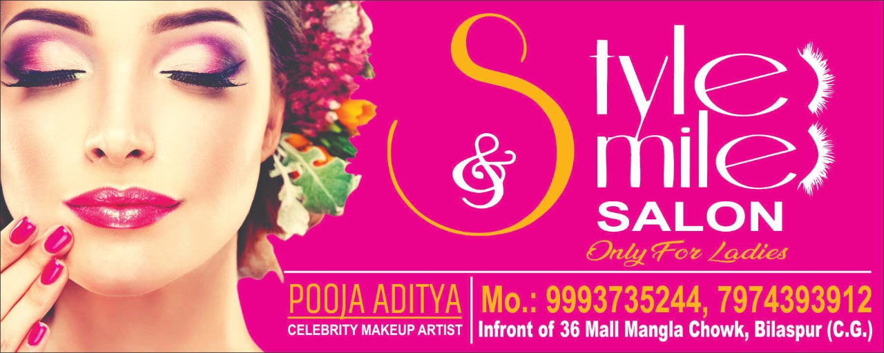 बिलासपुर। सिटी मॉल मंगला के सामने स्थित स्टाइल एंड स्माइल सलोन में 14999 रुपये में ब्युटी पार्लर का फूल कोर्स कराया जाएगा। जिसमें छत्तीसगढ़ मूवी की पहली महिला मेकअप आर्टिस्ट पूजा आदित्य के द्बारा थ्रेडिंग, वैक्सिंग, मेनीक्योर, पेडीक्योर और हेयरकट , मेकअप हेयर स्टाईल एवं कम्प्लीट ब्युटी पार्लर कोर्स का प्रशिक्षण देंगे। 2० जनवरी से चालू होने वाले इस पार्लर कोर्स में 3 माह प्रशिक्षण पश्चात प्रशिक्षार्थी चाहे तो 2 माह का अतिरिक्त प्रशिक्षण दिया जाएगा। न्यु ईयर पर सर्विस में 3० प्रतिशत डिस्काऊंट के साथ लिमिटेड टाईम और लिमिटेड सीट को देखते हुए सीखने के इच्छूक 99937 35244 , 7974393912 पर संपर्क कर सकते हैं।